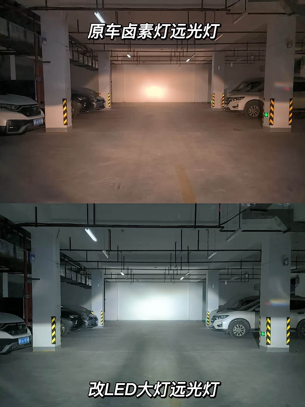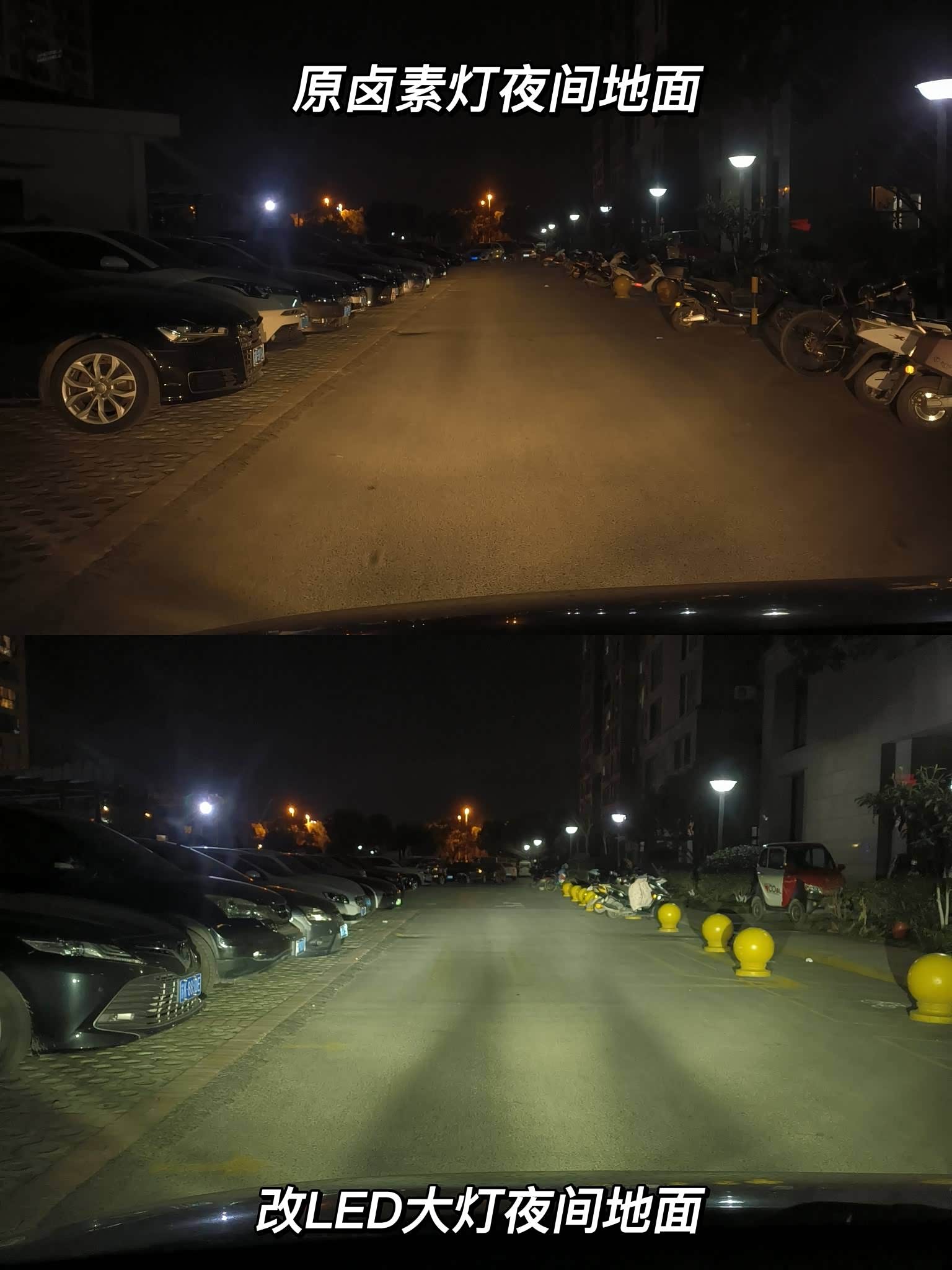 好在很快装好了,立马晚上开去体验了一下,在更换灯泡前拍了一些对比照片