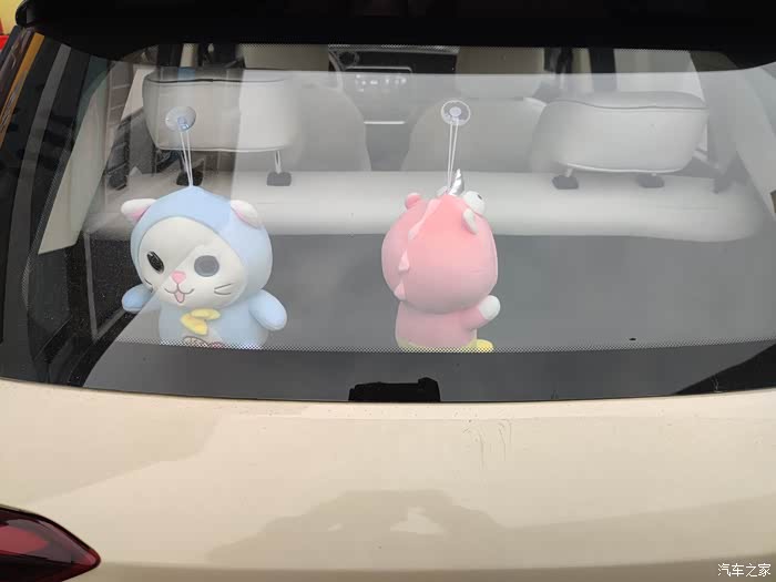我把充电枪放回原处后就终于等到闺蜜了,拿上刚买的咖啡,坐上车准备出发!最后秀一下我挂在车后备箱顶的可爱娃娃~是我闺蜜在抓娃娃机上给我抓的!我好喜欢!真的很可爱呢!