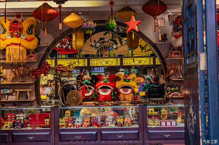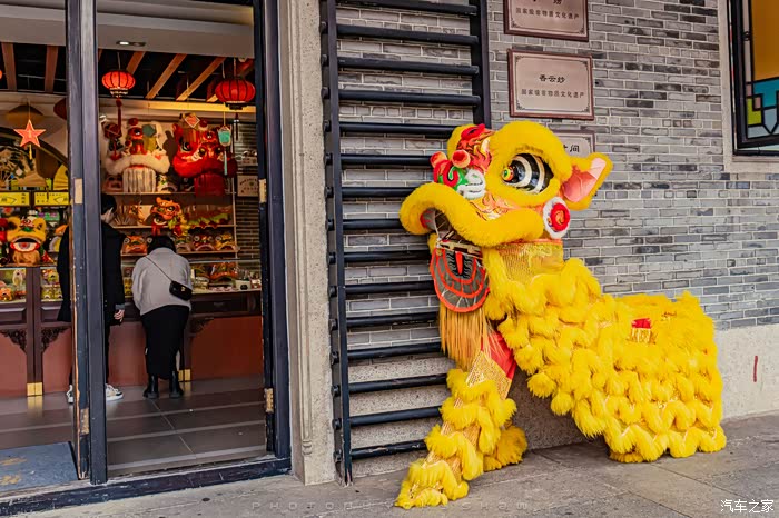 在这条街上除了各式各样的小吃,还有民间艺术工艺品店,小公主已经被门口的狮子给吸引住了~