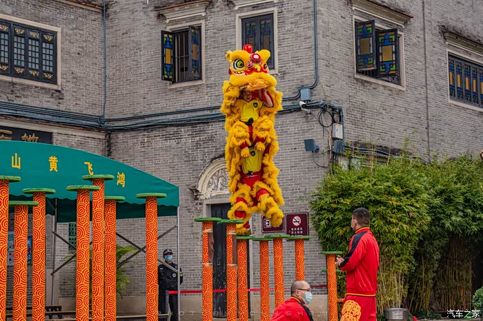 千万不要错过这精彩的醒狮表演,毕竟佛山的南狮实力在全国可是数一数二,看着狮子在高低桩上灵活的跳跃,俯身,站立,确实让人有种狮子在山峦中灵活穿梭的错觉。