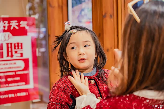 果然一知道要出去玩,包包肯定是最兴奋的了,马上拉上妈妈换上了新年套装,红红火火迎新年啦,哈哈。爱美的小家伙还要卷发,搭配小夹子,装扮一番就美美的出门啦。