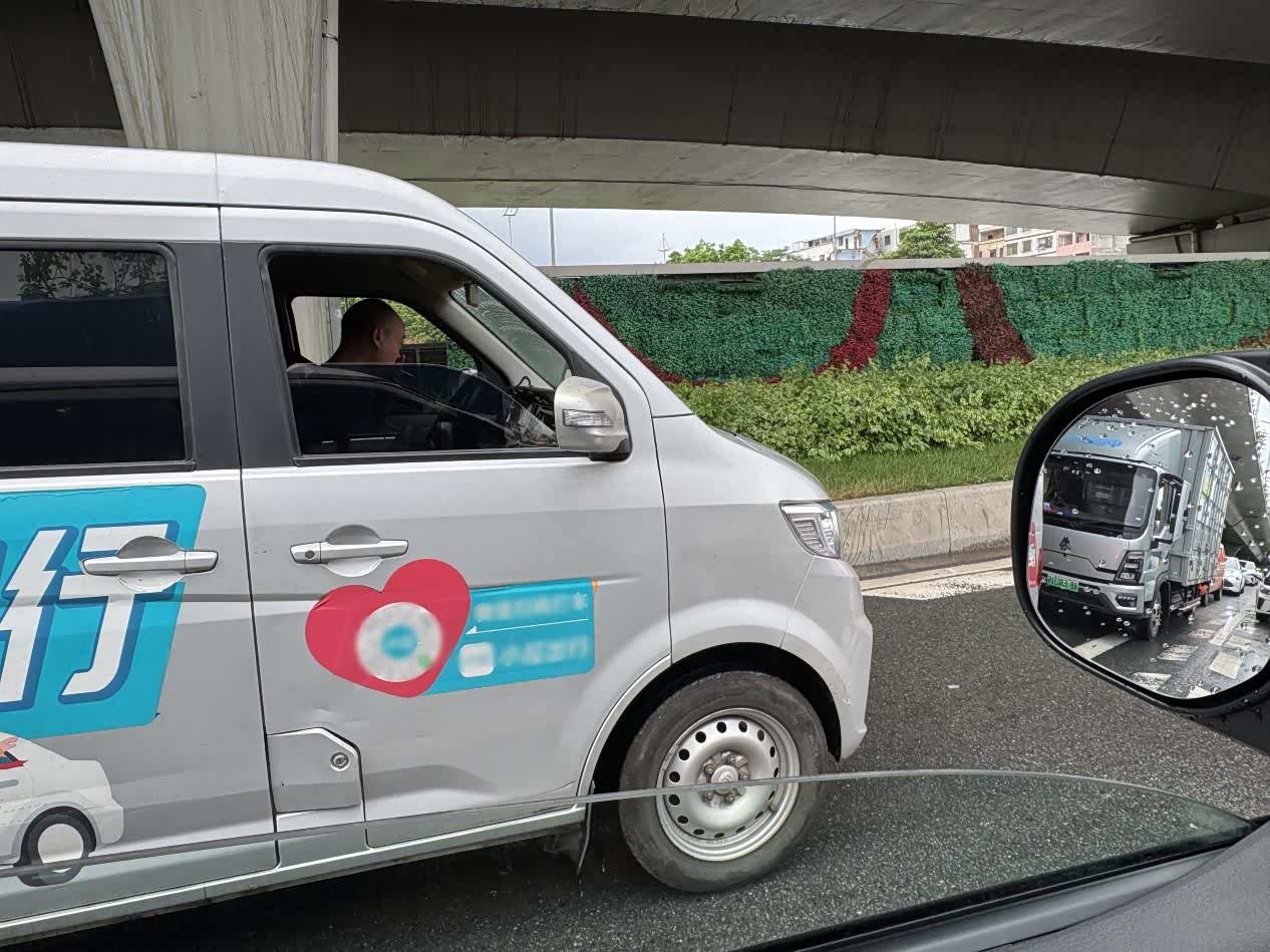 等着红绿灯,看了看两边的车况,突然发现菱智的驾驶视野还挺开阔,坐姿也比较高,旁边的小面包车这一刻在我面前,应该也很有压迫感吧哈哈。