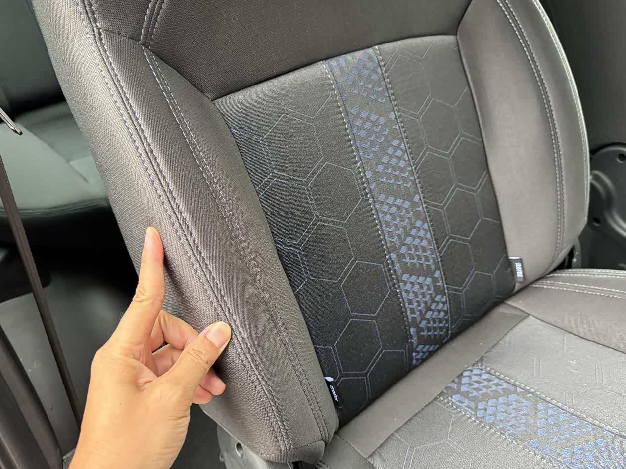 给大家看下车内空间,2+2+3的座椅布局,二排是两张独立座椅,可以前后挪动,座椅虽然都是织布的,但尺寸不小,填充也很厚实,座垫和靠背都有侧边支撑和包裹,坐在上面还是挺舒服的。