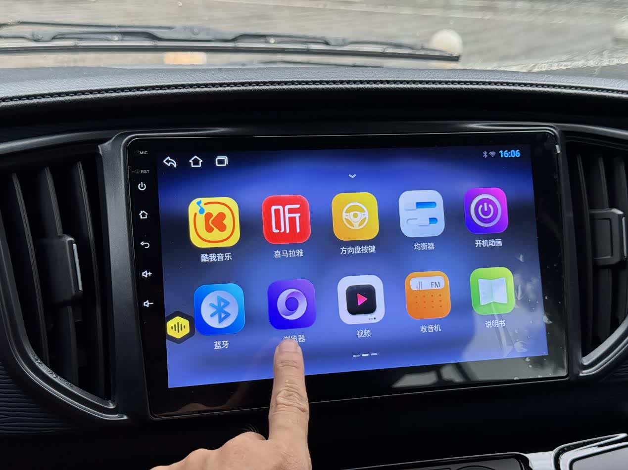 车机系统比较简洁明了,像导航、音乐、蓝牙、电台这些,比较常用实用的功能都有,想要其他应用,也可以用数据线连手机。
