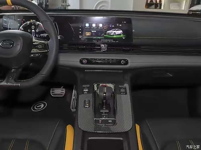 车内设计非常简单,近乎对称的环抱式中控台营造了一定的运动氛围,看起来,让人眼前一亮,双连屏的设计增强了满满地科技感觉,大量的亮面碳纤维纹理面板和大范围的软包裹,兼职,就是高端大气,上档次!比许多合资车用料实在多了。