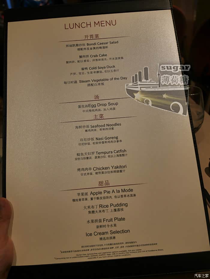 在美国爱肯烧烤餐厅American Icon Grill吃了些披萨牛奶,准备第二天最后一个航海日