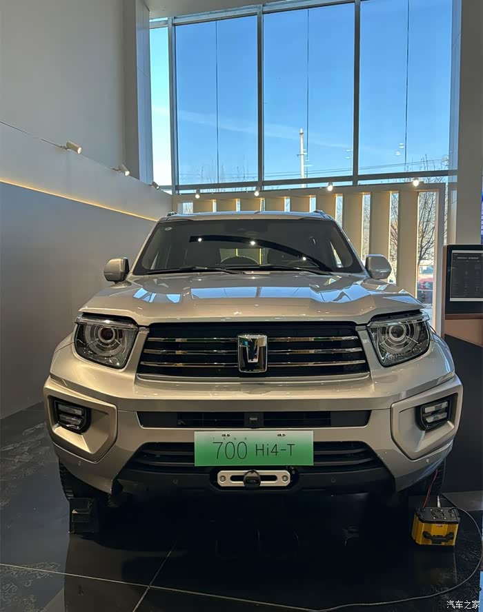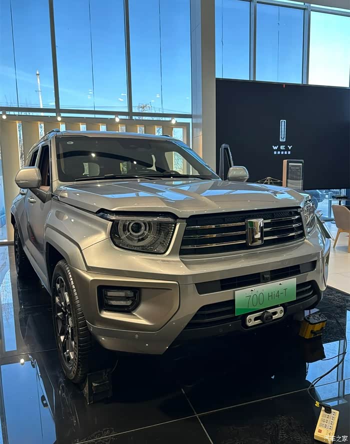 刚到4S店,就看到那辆威武帅气的坦克700Hi4-T,经典方盒子造型,线条硬朗笔直,前脸进气格栅大得醒目,配上犀利大灯,辨识度超高。侧面看,车身高大威猛,大尺寸轮毂特别吸睛,力量感十足。整体造型不仅耐看,还极具个性,非常符合我的审美。