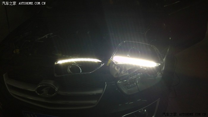 我的x80车是在2013年8月购买的,使用10个月了,跑了1万多公里了,没出现过什么毛病,车子的性能还是非常好的。车买来之后做了一些改装,主要有前置雷达、车底护板、电子狗、行车记录仪、ETC(高速收费装置)等等。看到大街上有日行灯的车越来越多,我也上网搜了一下,看到x80也能改日行灯,就动了自己也要改装日行灯的想法。心动不如行动,要改装日行灯,先从理论上学习一下,查找了大量的资料,做些基础功课。在T宝上查到好多家销售x80日行灯的,还不确定用哪家的更好,就在论坛里查看帖子,x80的帖子有关改装日行灯的只有三个比较详细,但方法不一样,一个是直接在前雾灯上改,另一个是不动前雾灯,只是更换前雾灯的灯罩,灯罩上有条形的日行灯。最后选中了后一种方法,个人喜好:一是条形灯非常好看;二是改装相对容易,不破坏任何线路;三是功能上可以做调整,发动机起动后,日行灯就亮,视宽灯打开后,日行灯仍然亮着,打开近光灯和远光灯,日行灯灭。当然,懂得原理后,也可以自行更改日行灯使用的方法。