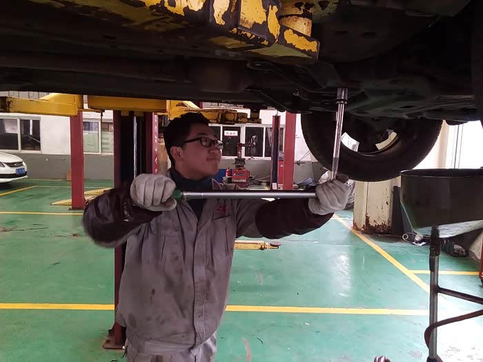 技师用那个工具在紧固什么地方? 打算去附近好的地方去保养了,我们这里4s技师又换了一批,工具也是简陋的一塌糊涂,紧紧螺丝都是常见的小扳手 简单拧拧。