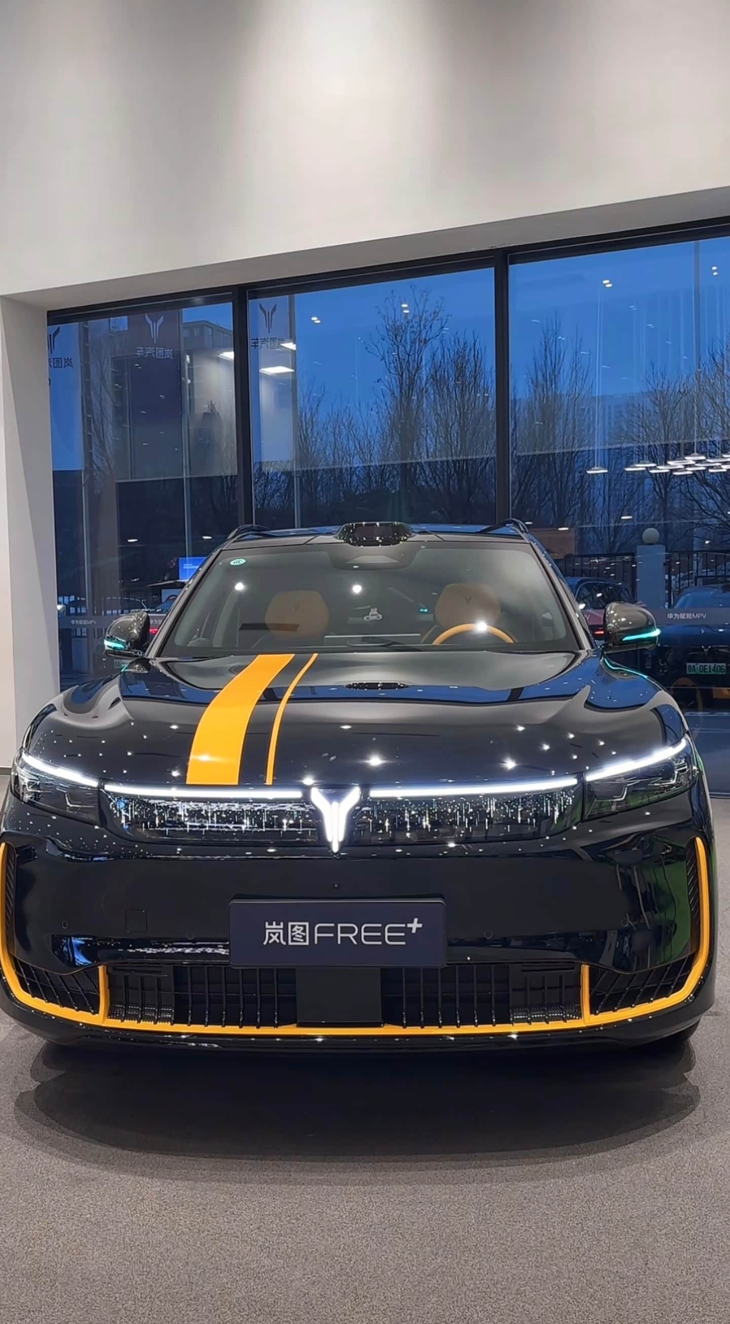 打卡岚图展厅,一眼锁定这台定制版岚图FREE+。黑武士车身底色搭配亮黄拉条与轮毂,从车头贯穿到车尾,运动气场直接拉满,在一众车型里辨识度超高。