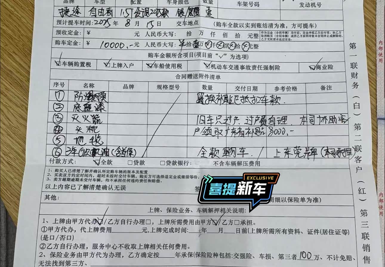 订金一交一万块,马上安排订车,大约五天工作日,车子就到店了。新鲜出炉7月的车。比我提车早了一周而已。然后销售安排验车,25款灰色1.5发现自由者,第一眼看过去就是帅。因为第一辆车提车的时候没有检查清楚,回到家才发现玻璃有划痕,所以这台车检查的比较详细,开到阴凉的地方打开四个车门逐一检查特别注意玻璃方面。自由者的钥匙设计的非常时尚潮流跟车型非常搭配,因为落地包牌的,所以上牌没有太大的坑