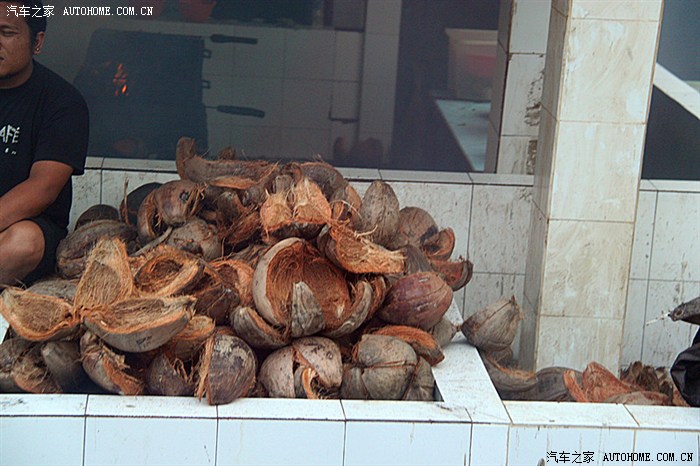 当地用椰壳做烧烤的材料,引起的烟雾不容小觑,很呛人,PM2.5不低呀