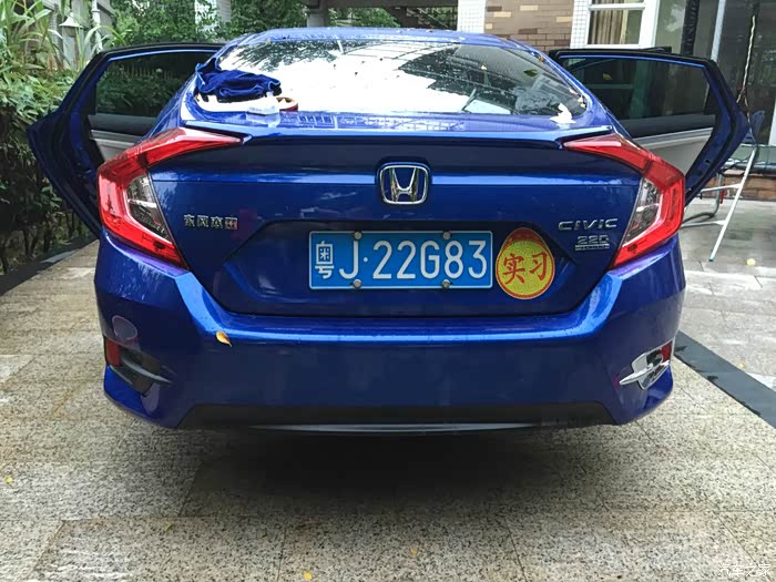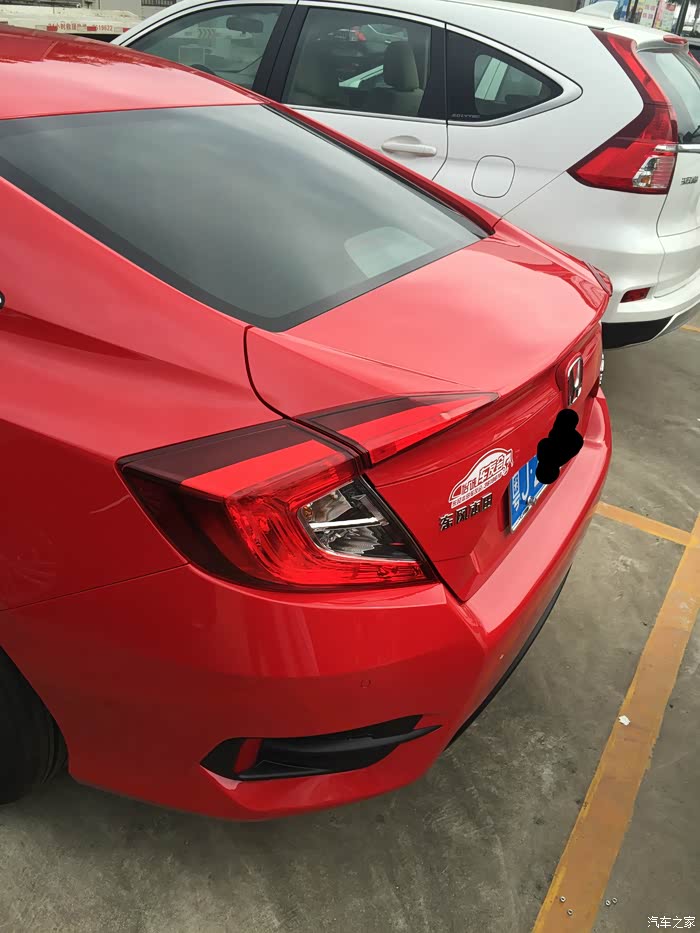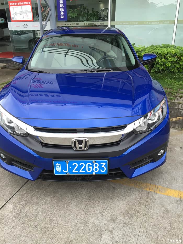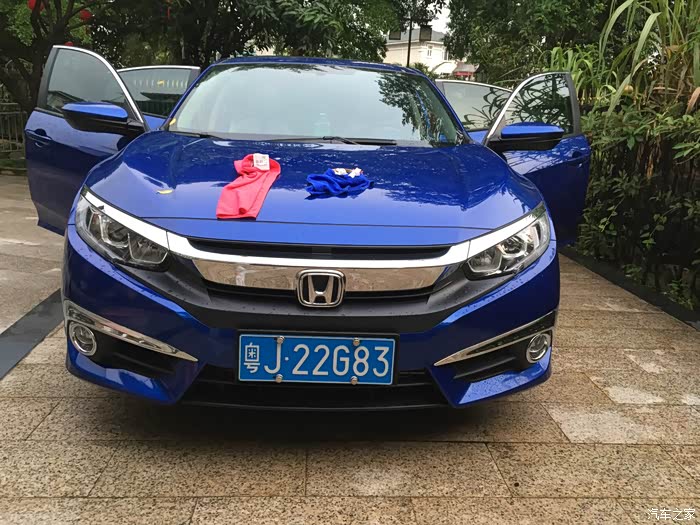 开门见山说吧,我本来一直关注新思域,尤其是手动挡,但是家里车挺够的,所以当时也就只是想想,结果最近运气不好,我的1.6的12款高尔夫出了点事处理了。必须换车,当时只是考虑飞度和思域,后来在努力下还是直接上思域吧,至少能开个5年以上也不担心落伍。所以我去4S店不是去看车,而是找车。谈价格,最终大概加的有1000左右吧。反正必须要快速提车,我等不了,上下班一直在借一个朋友的车开,很不好意思。提车很快速。5月26号全款,5月27号直接提车走,号码也是10选1,当时就出车牌,都没用临牌。江门的车友见到可以滴我。