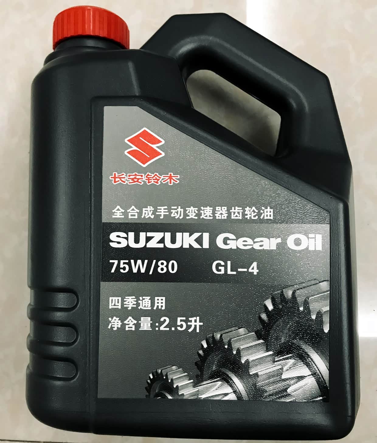 长安铃木全合成齿轮油粘度75W80,规格GL-4,容量2.5升,基础指标都很适合。