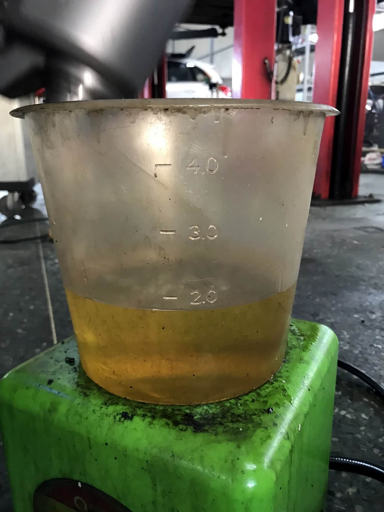 放出使用二年的长安铃木75W80齿轮油,油偏褐色,有一定的清洁效果。