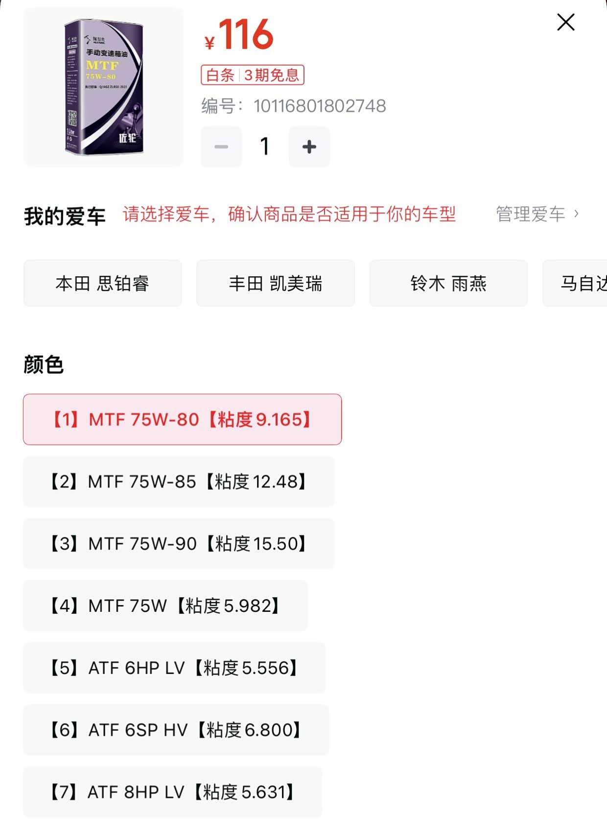 大佬表示变速箱油(粘度太高)换档费劲;用(原厂变速箱油)最适合。