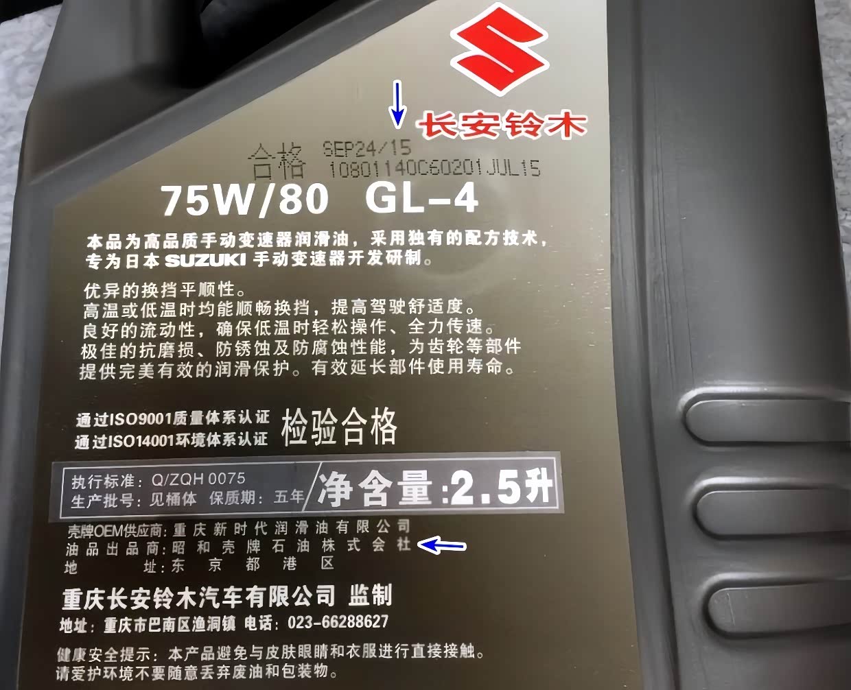在2015年的时候,长安铃木75W80齿轮油是(壳牌)日本工厂代工生产的。