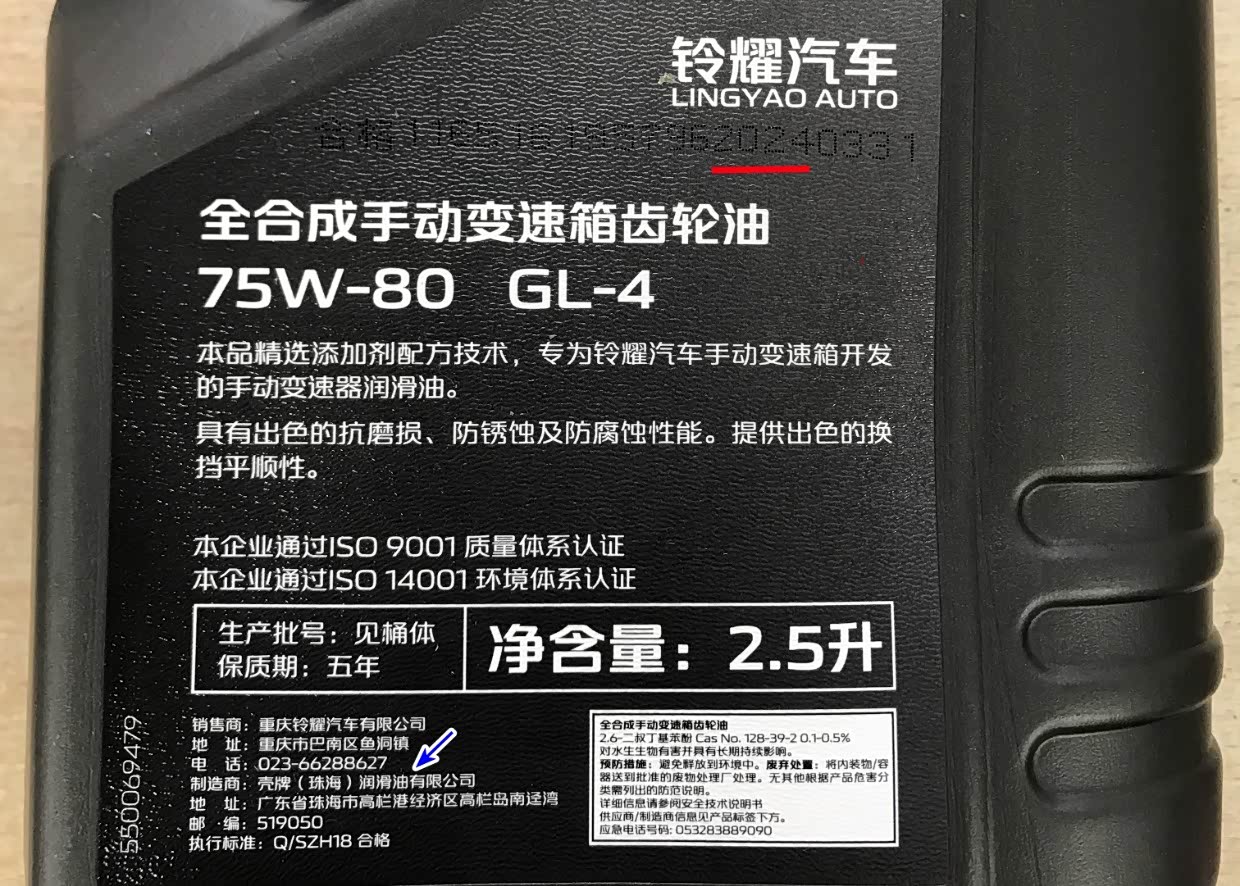 到2024年的时候,铃耀汽车75W80齿轮油是(壳牌)珠海公司代工生产。