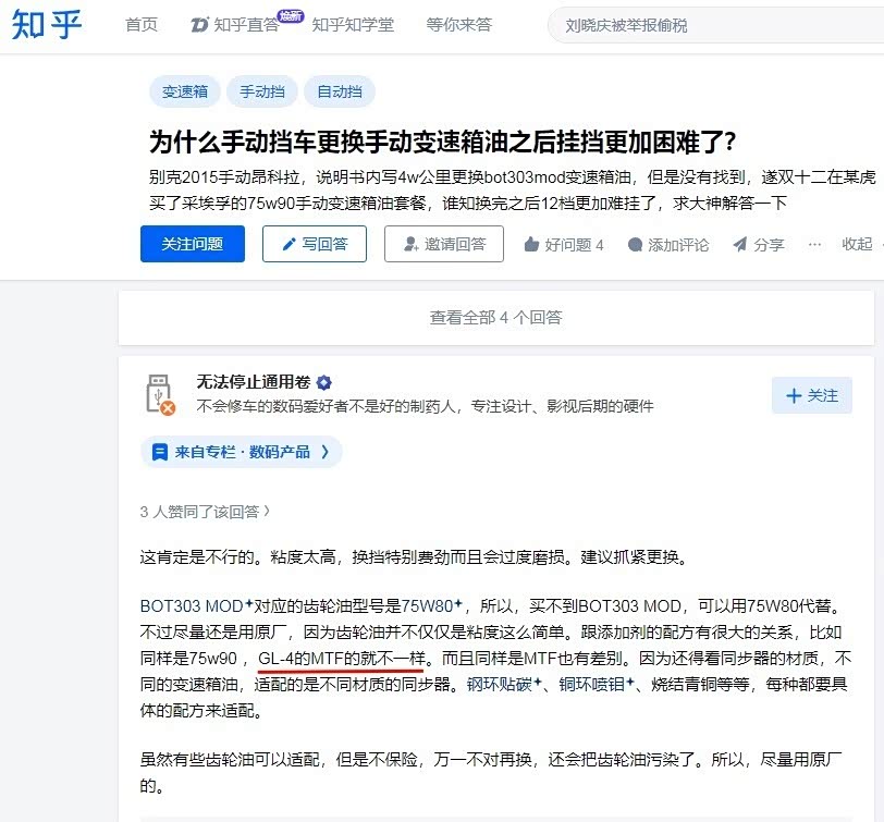 再次翻出知乎大佬关于手动变速箱油的介绍及建议。