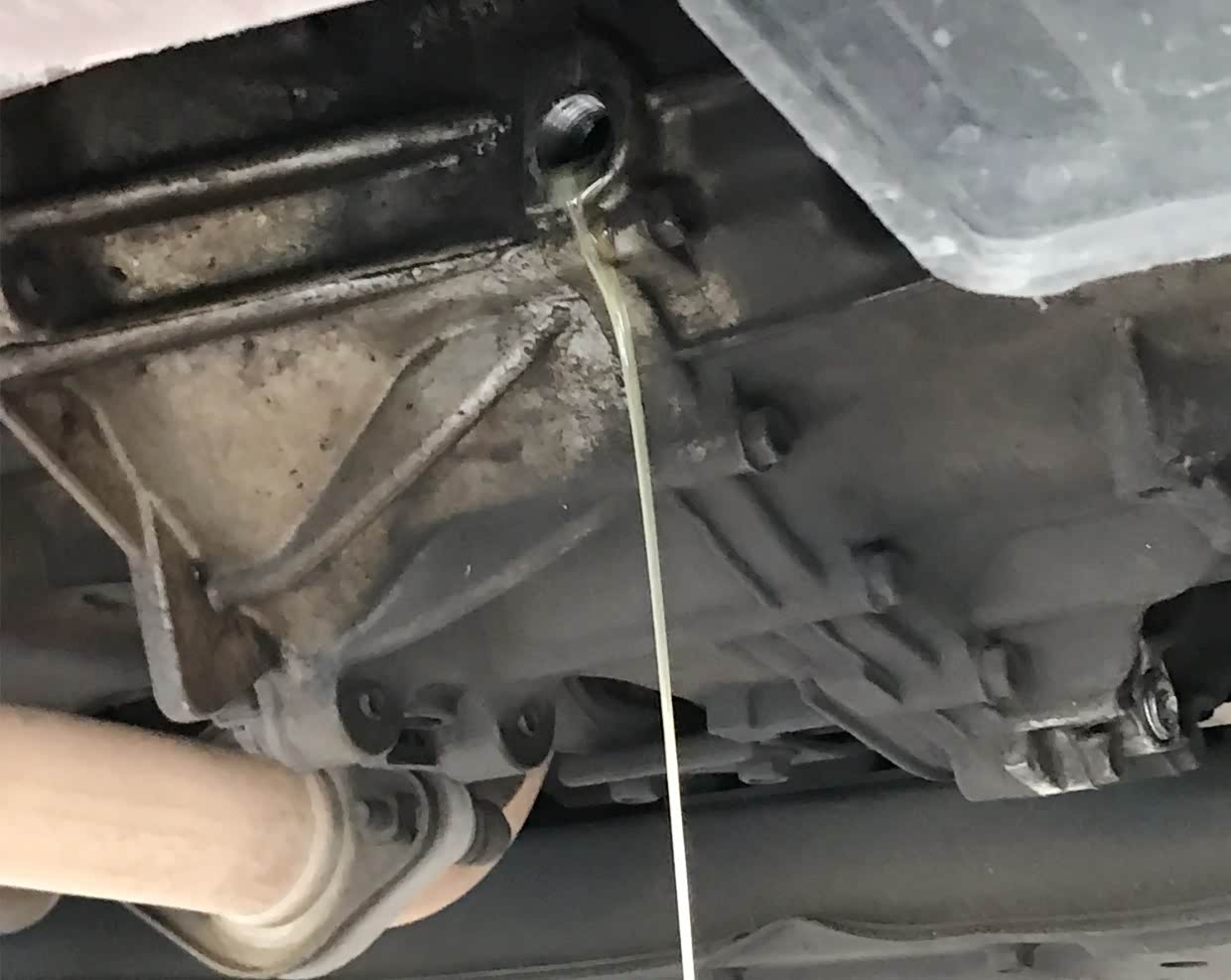 放出使用一年的爱信75W90,油品颜色没有发黑,证明变速箱里面比较干净。