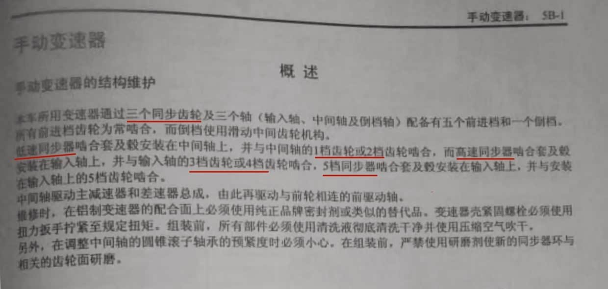 4、二档退一档非常困难,一档同步器完全不起作用。
