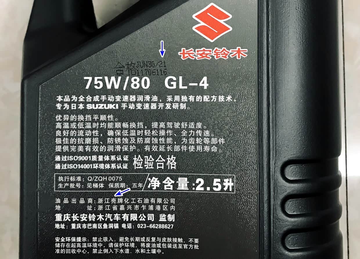 到2021年的时候,长安铃木75W80齿轮油是(壳牌)浙江公司代工生产。