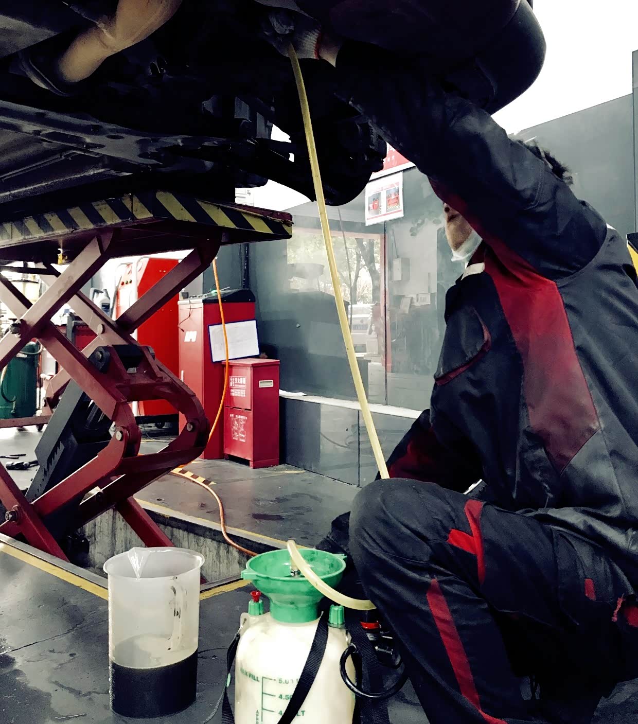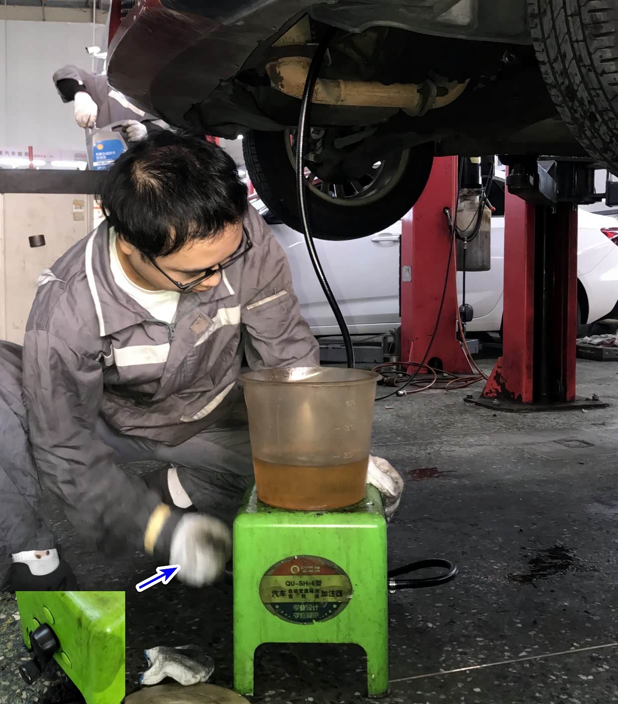 我只买了2升爱信变速箱油,所以师傅决定放出2升加入2升。