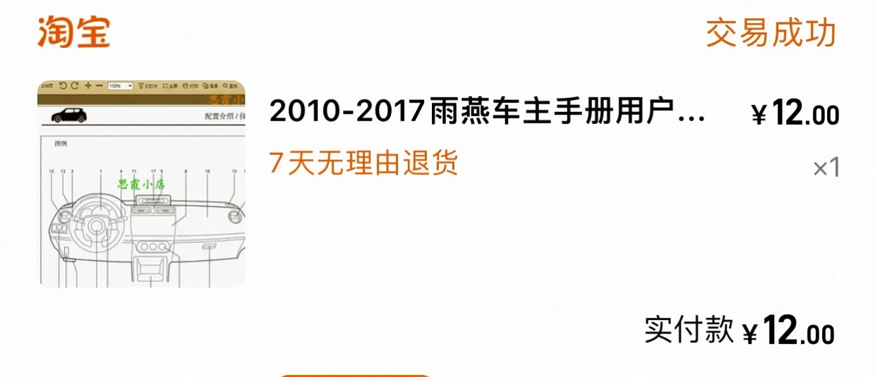 之前那本2005年的雨燕维修手册似乎太久了,于是我在网上买了一本2010-2017款雨燕用户手册。