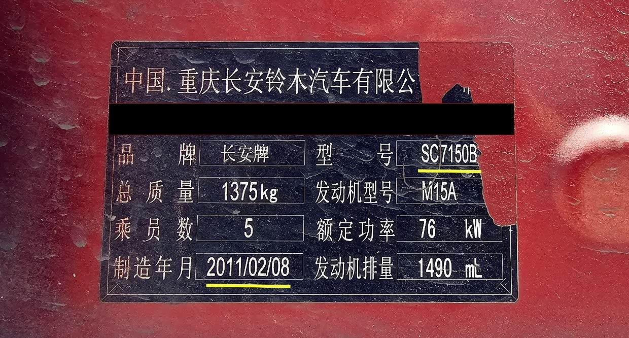 我这台雨燕是2011年2月生产,型号SC7150B。