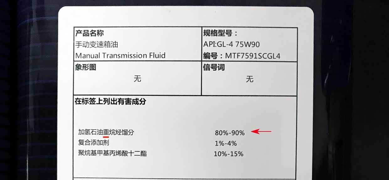 这是一款(全合成)手动变速箱油,有80%的加氢石油重烷烃馏分,属于三类基础油,重烷烃的基础油更加精炼一些。