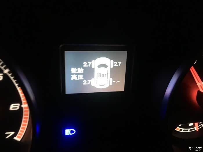 应该是你设定的胎压最高值比2.7这个值小啊!冷车胎压在2.2-2.5之间就算正常的!你可以改一下最高值