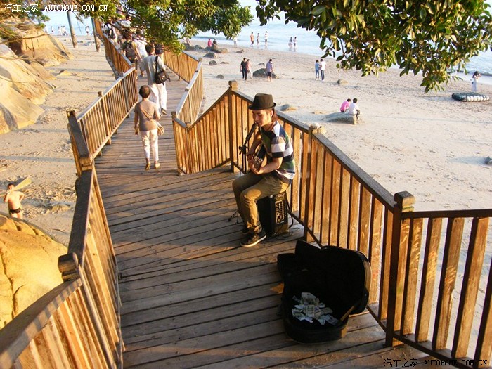 出来就是紧挨着白城沙滩,可以过去走走。只是沙质感觉一般,我们俩走了半小时就没走了。