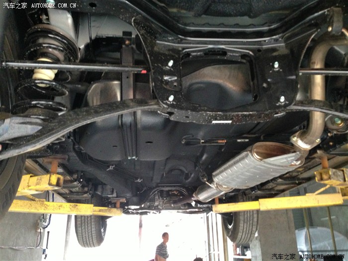 最后再说说今天开了一天新的感觉,主要说缺点:1、方向盘依然是那么的坑爹,如果你身高175以上,将驾驶座调至最高,恭喜你,仪表盘时速表80-120区间你是看不见的,原因就是方向盘和骑士一样还是遮挡了部分显示。但100公里速度刻度线大概就在你12点钟方向,所以问题也不是很大,如果你身高170以下,驾驶座调低恭喜你,这个现象不存在。2、自动挡起步肉,我试了一天,你要想省油所以温柔的踩油门起步,呵呵,那就是一个肉字了得。但你要是多给点油还是可以和大部分车一样顺利冲出去的,如果你技术好,用手动模式,自己选择1档起步根据车速自己加减档,这车开起来还是蛮顺溜的。3、操控感觉,我认为基本和棒子的越野车几乎相同,虽然不能说比他们的好但也差不到哪里去。4、下午去喷了底盘装甲,仔细研究了这车的底盘和装配质量,在国产车里应该是不错的,只有一个瑕疵,汽油滤清安装位置不妥,应该安装在隐蔽处或油箱后部。所以大家真的在很烂的路上开还是要注意别挂坏了滤清器。