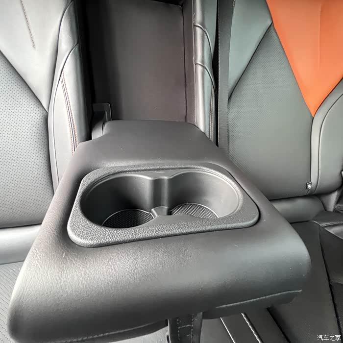 后排杯架隐藏在中央扶手处,不使用时往上提起能保持车内整洁和空间的容纳,需要时轻轻下拉展开即可。这对后排乘坐的亲朋好友非常的友好,长途旅行时的时候,还能让他们随时放置水杯,好好享受出行的一起快乐时光。比如一家人出游,后排的老人和小孩喝水就方便很多,不用再麻烦前排人员帮忙拿放。