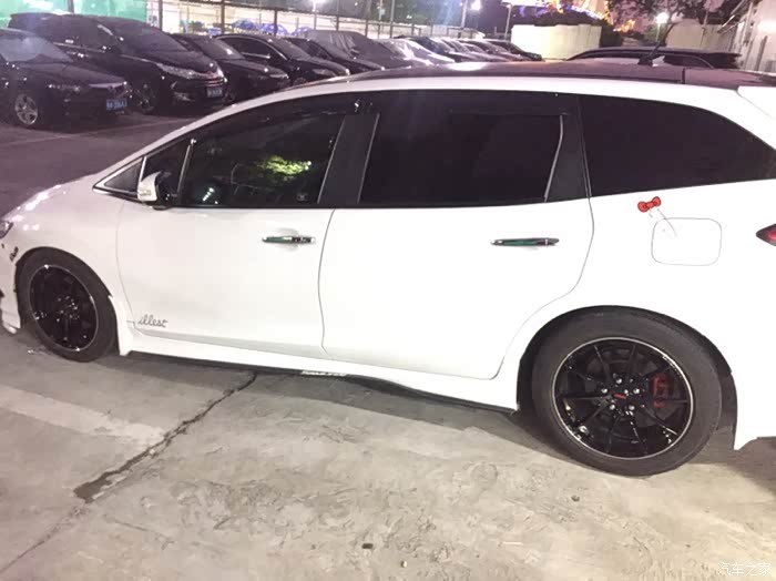 之后慢慢认识了一些车友,知道了“一低遮百丑”这句说话,自己也觉得原厂太高了和轮毂不协调,所以,改.改.改!由于预算问题就改了短弹簧,和加装了前顶吧。改完和谐多了??后轮加装了25mm法兰盘,变得有抛边了,超级好看