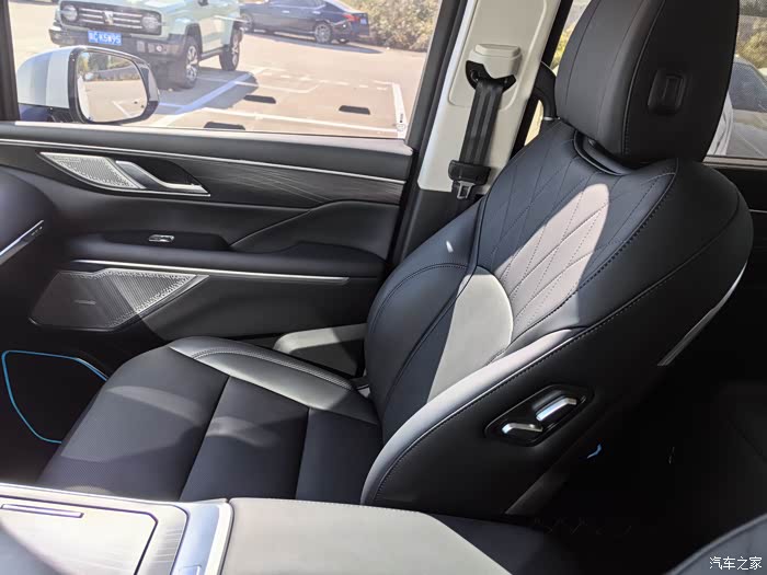 然后是驾乘空间,高山的每一排我都坐着感受了下,空间表现是真的可以,坐进车内不仅纵向空间宽敞,而且还可以横向空间也是非常棒,主副驾驶位坐进去腿部的左右可活动空间都挺大,而第二排乘坐空间堪称完美,怎么坐着舒服就怎么坐,各种坐姿空间都不是问题。此外,车辆第三排空间有人不差,与第二排共轨调节,空间可调节范围很广,第二排调到一个适中一点的位置,一米八的个子坐第三排腿部也不会卡住。