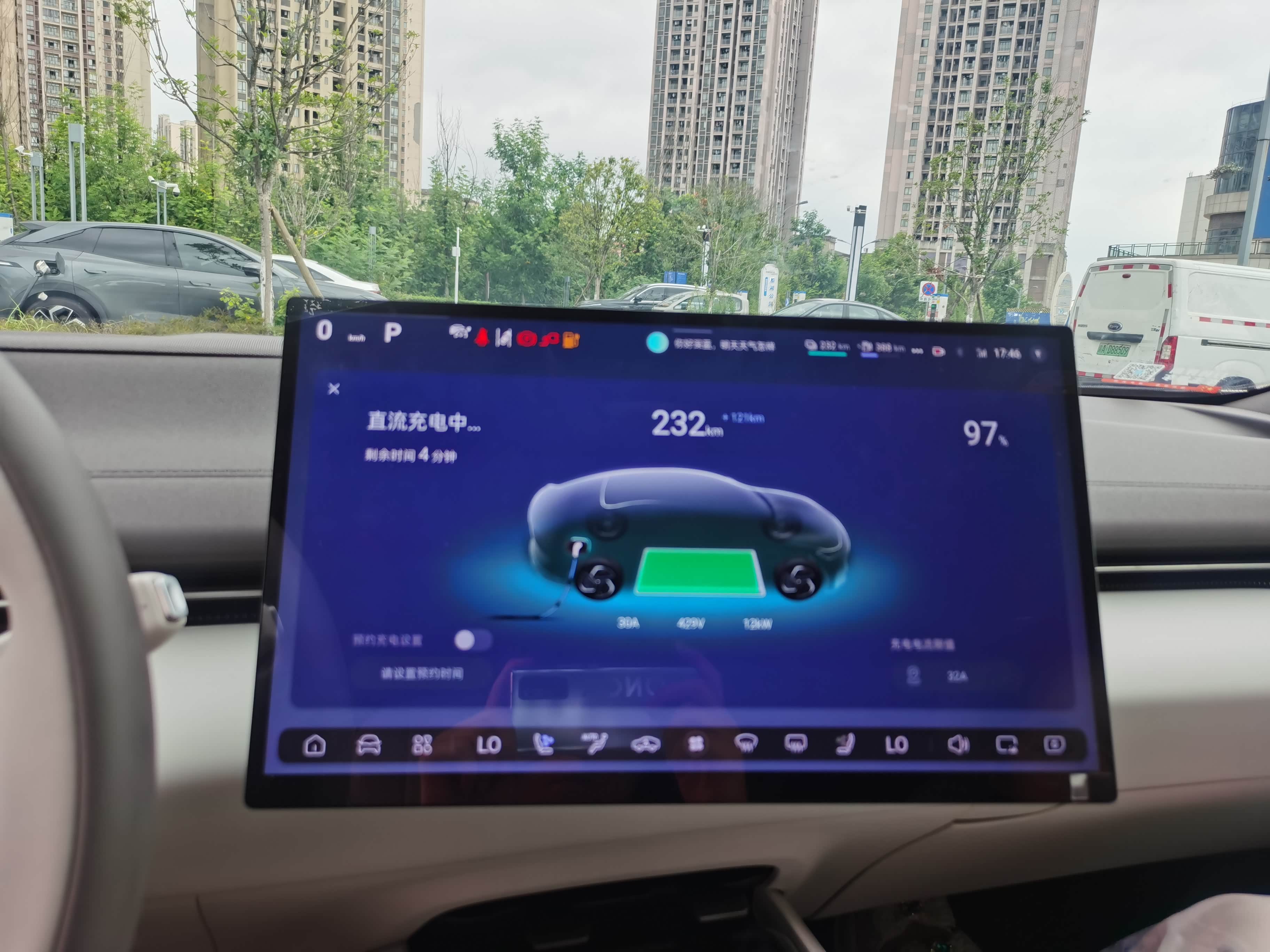 充电方面,快充速度很给力,从20%充到95%,一般35分钟左右就能搞定。不过要是遇到充电桩功率不稳定,时间就会延长一些。有一次从30%充到98%,因为快充时电流不稳定,用了四十多分钟,相对较慢。