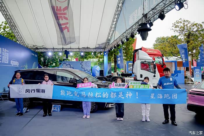 到柳汽展台的时候,现场就已经有很多人聚在这里了。刚开始还有点儿搞不懂,为啥一个马拉松比赛能吸引这么多人?走近一看才知道,原来柳汽的展台周围弄了很多“网红打卡点”和互动的小装置。