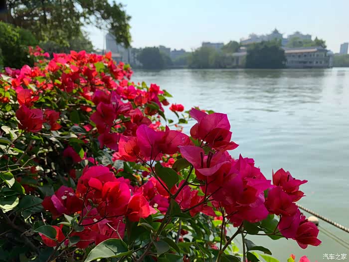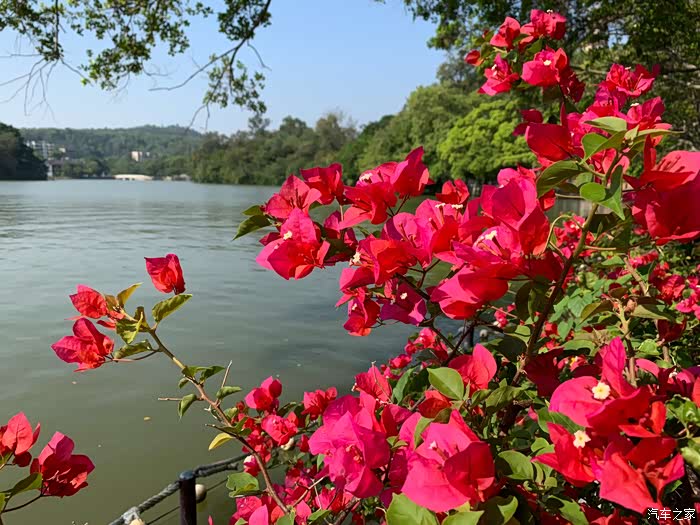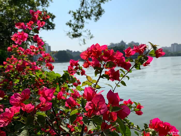 惠州西湖虽比不上杭州西湖,却有自己的小家碧玉气质,惠州西湖就有“五湖六桥十六景”有些景点如“苏堤玩月”、“孤山苏迹”、“花港观鱼”与杭州的西湖景点命名相似。在葱郁的榕树下散步,可以从任意方向亲近湖水,远眺揽胜。在晴空万里的天气,我的媳妇逛西湖看一路绽放的三角梅,秋风拂面,不失惬意。