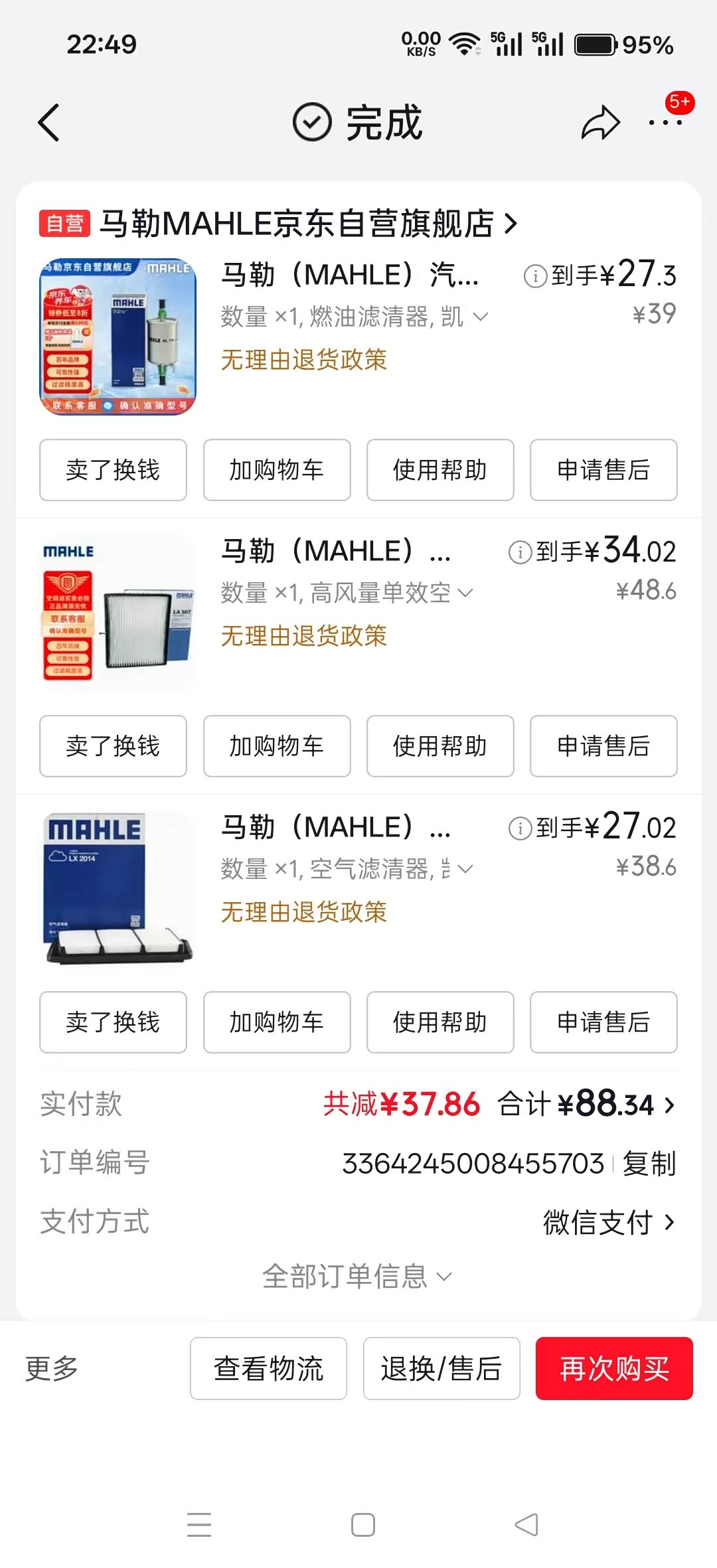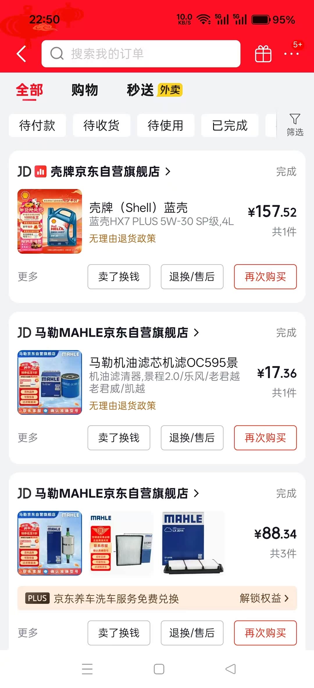 本来没有打算年前换车,把保养用的东西都买好了,结果4s打电话过来说年前买车包购置税,最后没有忍住年前换车了。现在余下这些保养材料就用不上了,扔了感觉实在是太浪费,都是从京东自营上买的材料,全新没有开封(这几年我也一直用的这些,质量没问题)。有车友需要的话半价转让,邮费自理。需要的私信我。