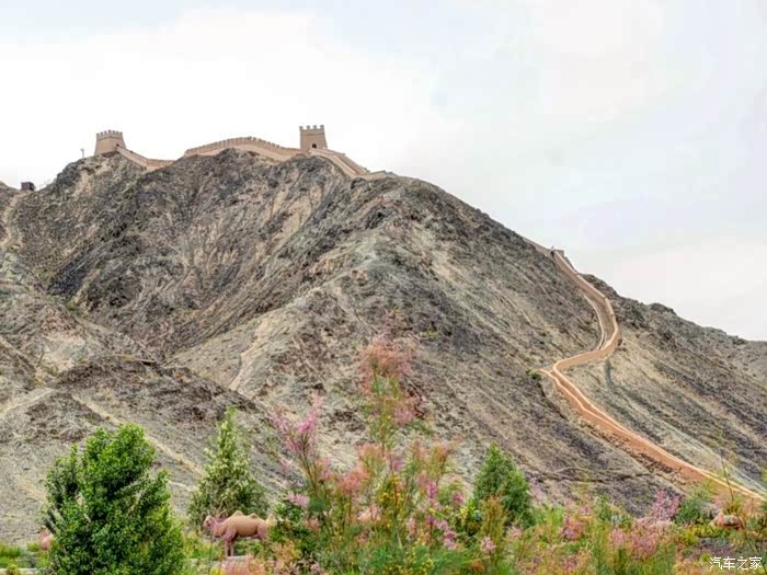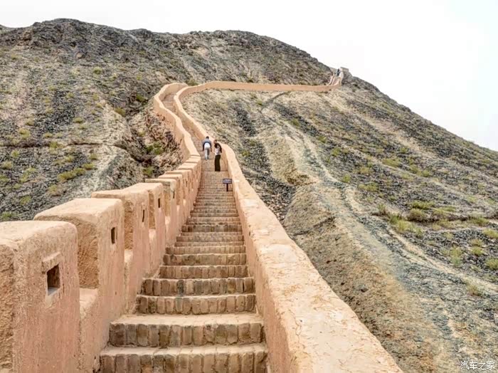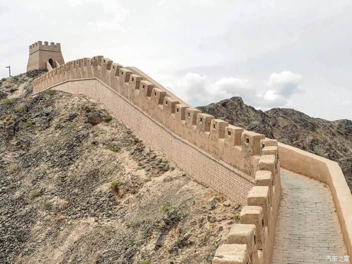 嘉峪关悬臂长城 悬臂长城距离嘉峪关市区约11公里,距离嘉峪关关城约7公里,因筑于约四十五度的山脊之上,形似凌空倒挂,因而得名"悬臂长城"。 悬臂长城是嘉峪关关城的北向延伸部分,是嘉峪关古代军事防御体系的重要组成部分,始建于明嘉靖十八年(1539年),为就地索取的砾石、黄土夯筑而成,现在只存750米,经1987年修缮,由漫道、垛墙、墩台组成,在首尾各增修一座墩台,共有三座墩台。为了便于游人攀登,1987年重修时还在首墩和山脊城墙上修筑了台阶式漫道。沿漫道而上,虽只有四百多级悬臂长城台阶,但也足以使人心生踟蹰,然而只要登上山顶,放眼望去,关外大漠的荒凉尽收眼底,仅有极少的片片绿洲点缀其中,显示出这里还有生命在与恶劣的自然环境进行顽强的抗争。
