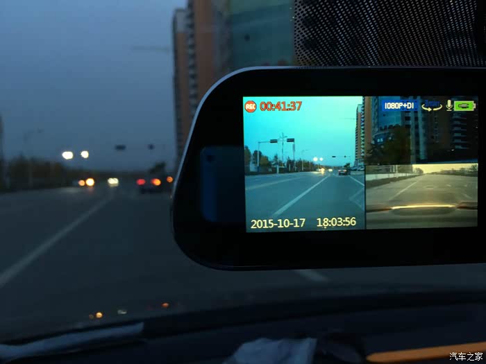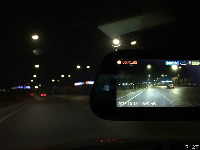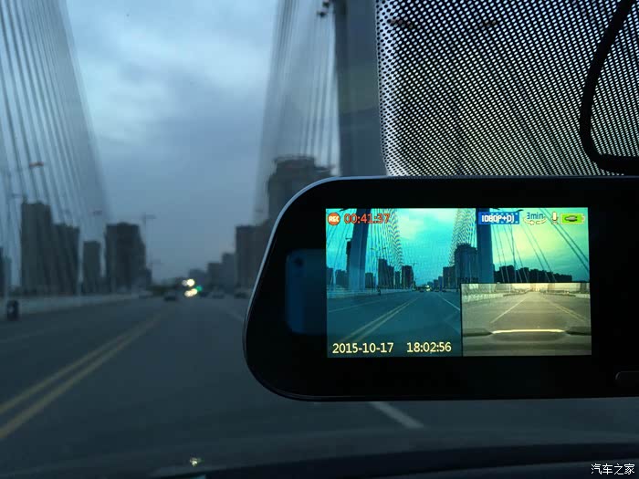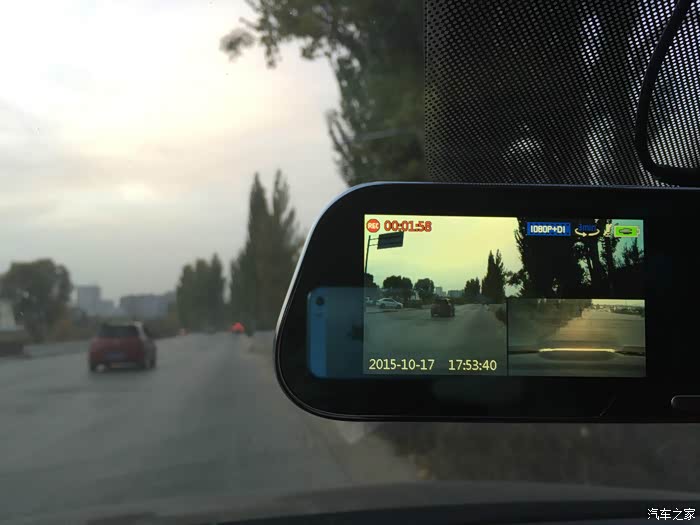 总结一下:整体感觉挺好的,大小合适,动手能力强的一个人就搞定了,后视镜从以前的白色变为蓝色的,刚开始可能会有点不习惯,因为带了自动防眩目的功能,所以不如原车的镜子亮度高,但是超炫酷,而且基本上有了后摄像头基本上不需要看后方车辆什么情况,通过显示屏基本就可以掌握,倒车时候看导航的倒车影像,温馨提示一下就是驾驶技术不强的一定要习惯哦。这款记录仪的功能也挺多的,拍照,检测震动,循环录像,不漏秒,光补偿等等,操作起来很容易上手。前摄像头说是140度是视角,这个也没专业的设备去测量,不过凭感觉来说挺广的,比我以前那个好很多,拍车牌很清晰,在很快的速度下也能拍下来,对前摄像头来说的很满意的,后视摄像头也还好,不过拍的视频和前摄像头比差距比较明显,夜拍功能的话如果没有强光的干扰,效果相当不错,是一次很满意的购买经历,这个产品也非常符合自己的要求,再也不担心碰瓷党啦(有了记录仪也不能掉以轻心,预防为主),最后真诚的希望我这篇作业贴能给车友们带来一点点帮助,总结完毕,接下来就是上图