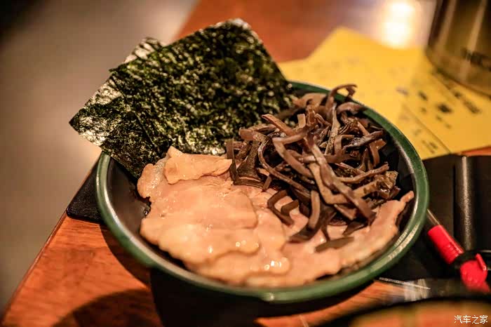 食用的时候,蛋直接打在釜饭上头,蛋黄还是没熟的,戳破之后,澄黄的蛋汁流了出来。按照食用方法,要先从中间的饭吃起,用小铲子把中间的饭挖起来,放入小碗中食用。 可能是蛋汁的关係,所以釜饭的米饭吃起来很湿软,味道蛮清淡的,只吃饭没什么味道,要搭配点料吃。 味噌汤用得好像是红味噌吧,味道非常重(我们觉得都不太受用),还带了一点苦味。 中间的饭挖出来后,要把盖子盖上,让釜饭继续燜烤,这样才能烤出漂亮的锅粑。釜饭跟港式的煲仔饭有异曲同工之妙,都是以焦香的锅粑为重点,志津香的釜饭,没有锅粑的部份,味道很清淡,口感有点像湿气太重的炒饭。有锅粑的部份比较有味道,比较好吃。
