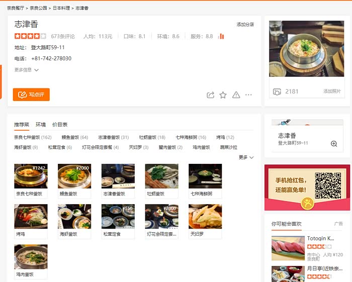 这个志津香的位置比较好找,从奈良公园往外走的路边,不大起眼的门脸,我们去的时间比正午稍早些,其实没有太饿,但由于到了日本天气是一天比一天的冷,所以,也兼有稍作休息的想法,决定进去,如介绍所说,果真需要排队,只有一位日本阿姨在门口等位区接待,店面不大,等候区就更小了,先发号再点餐,大概等了20分钟,有位置后,估摸着有个几分钟事先点好的餐食就上来了,相对我们家三口的味蕾,觉得不如介绍所言,大概是中国胃的缘故吧,哈哈,不管怎样,吃到热乎乎的东西还是很满足的。吃罢,其实还想休息一下的,但是作为国人,要时刻体现出高素质,我们立刻起身离店,出来后,在瑟瑟冷风中排队的人目测从里到外已有二三十人了,从此点可以看出人们的从众心理和宣传效应。