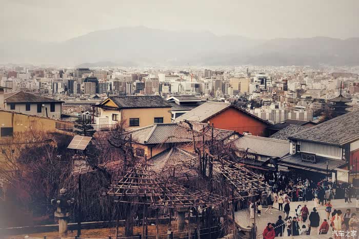 此外,游客还可以进入随求堂的地下室,体验有名的“胎内漫步”,寓意在菩萨体内祈祷。继续向前到清水舞台下方,抬头仰望,可以清楚地看到这个用巨型榉木柱并排支撑的“悬造式”建筑,整个建筑没有使用一枚钉子,非常壮观。从旁边的木质台阶走上舞台,可以眺望山下京都的风景,非常古朴,几乎看不到什么高楼大厦。本堂正殿供奉的本尊是十一面千手观音立像。我们三个国人,此次日本之行没有到任何寺庙敬拜,这里以后也不再提了,原因,很简单,国人。