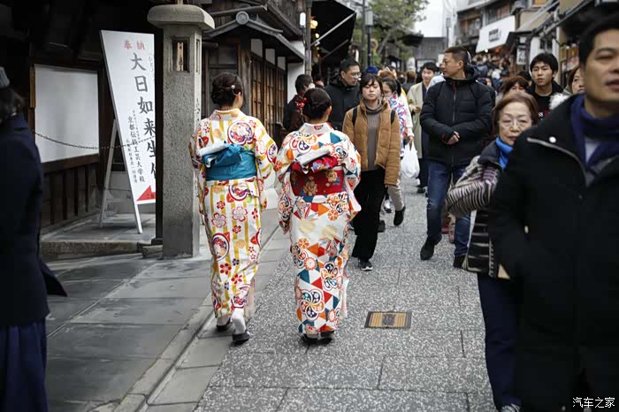然后,往回走的路上有很多横向的岔路,这里路过了二年坂、三年坂、石坪小路,特色就是随处可见的穿着日本和服、木屐的男男女女,古早的建筑、特色小吃或者纪念品店。按照行程,我们应该去八坂神社、祗园偶遇艺妓的,但是由于冷风瑟瑟,体力透支,我们决定先回酒店稍作休息,再做打算。打的回到酒店,已经到了入住时间,老妈冻得速速窝在了床上。