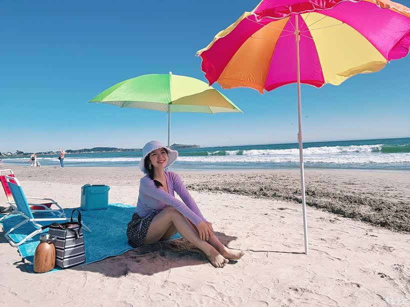 她第一个到达的地方为Carmel. 中途停一下看看海景。一号公路一路都是海景,哪里漂亮就停在哪里。