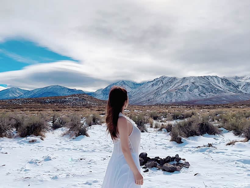接下来,离开了一号公路,走进山区。地理位置与旧金山和洛杉矶的中间有一个宝地叫做Mammoth Lake. 这里不愧叫做优胜美地的后院,景色美不说,还有温泉♨️。当然,因为在山区,现在这个季节还是比较冷的。