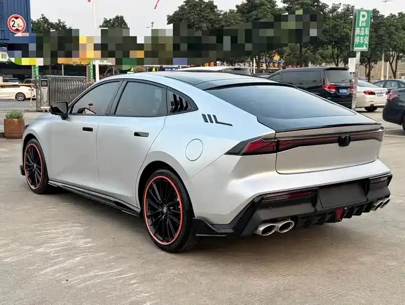 没换尾翼,原厂电动的已经够帅了,但后唇换成了带扩散器的款式,配合四出排气,尾部看起来更战斗,朋友说像从赛道里开出来的。