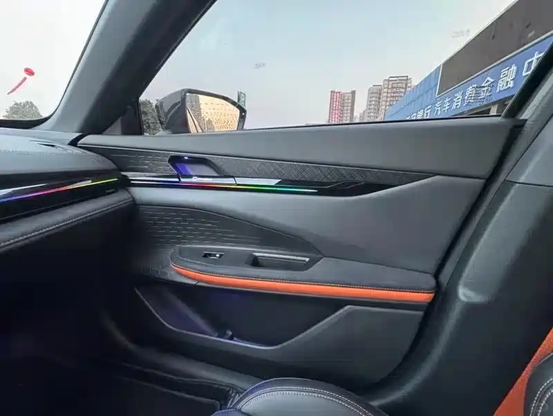 原厂氛围灯只有单调的蓝色,我加了门板、中控、脚窝的幻彩灯条,晚上开去东江兜风时,老婆说像坐在移动的酒吧里。颜色可以随音乐变化,接朋友下班时,副驾的女生都忍不住拍视频发朋友圈。